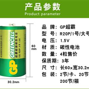 超霸(GP)一号大号碳性电池1号(单位:粒)