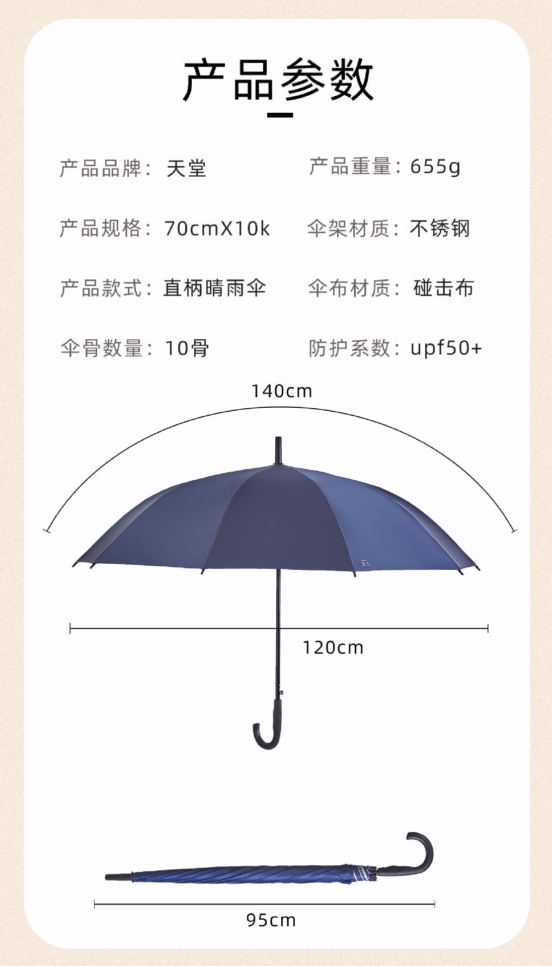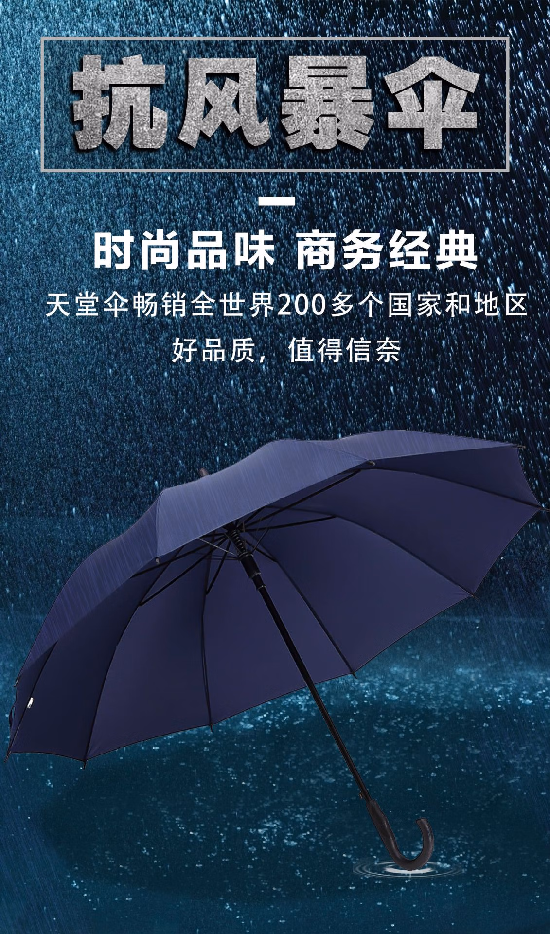 天堂伞193E加大加固自动伞雨伞长柄伞 10骨藏青(单位:把)