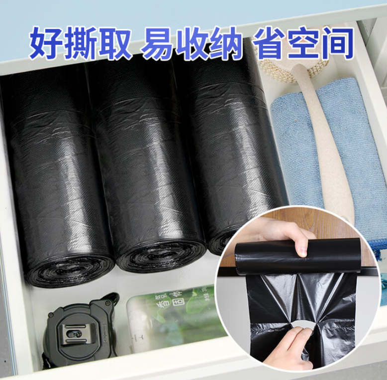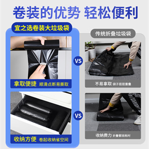 宜之选平口垃圾袋 黑色垃圾袋70*90cm(50只装)单面1.2丝大号加厚卷装款
