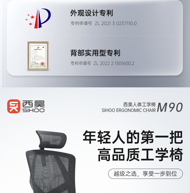 西昊M90人体工学椅护腰电竞椅子靠背电脑椅家用办公椅久坐新Vito M90曜黑+可升降椅背(单位:张)