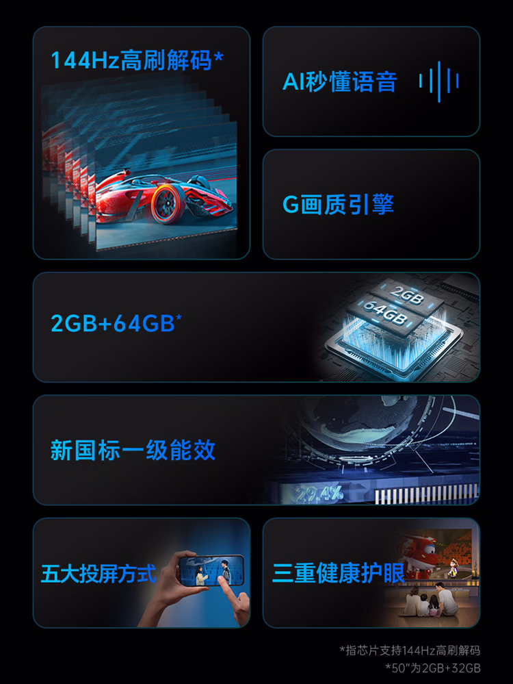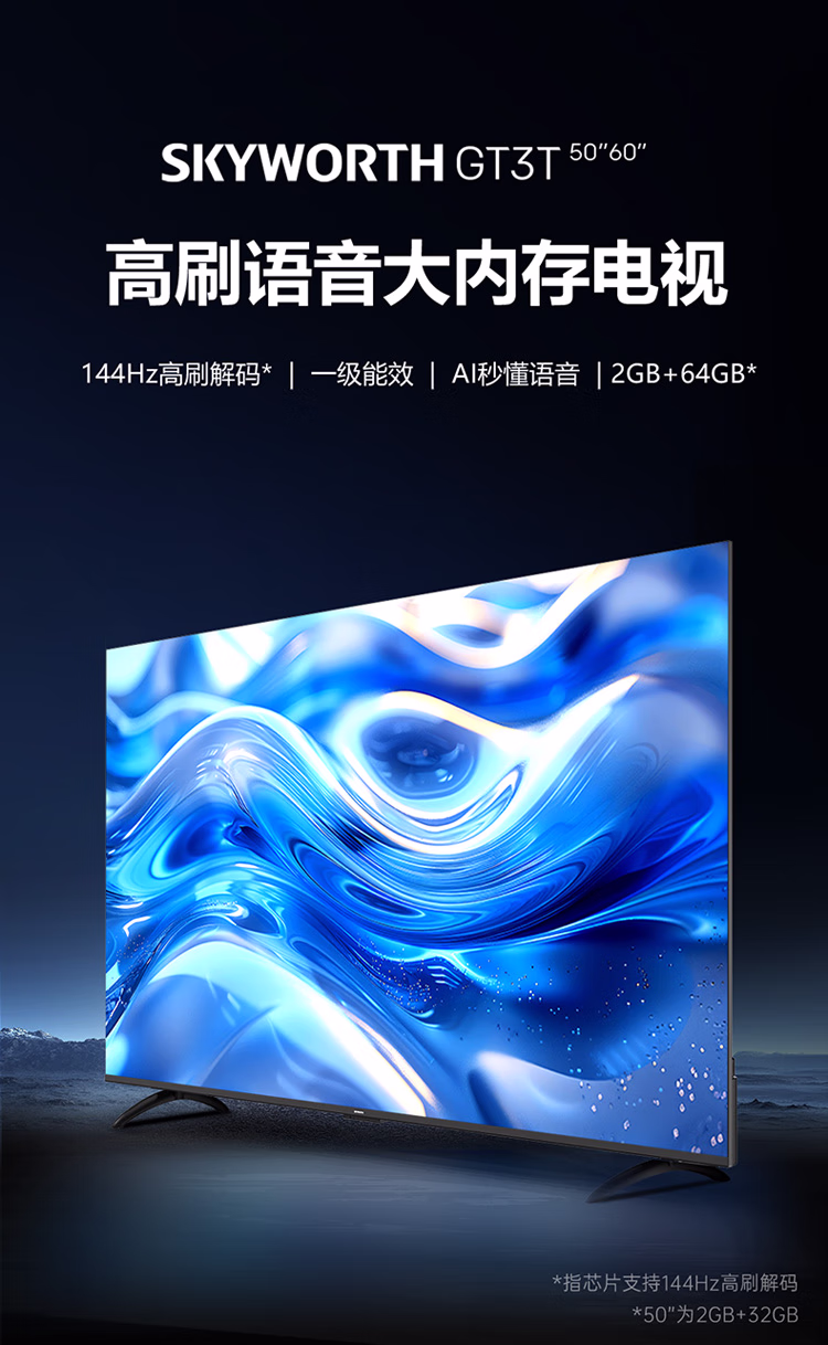 创维(Skyworth)50GT3T高刷语音大内存电视 144Hz高刷解码一级能效 AI秒懂语音 2GB+32GB