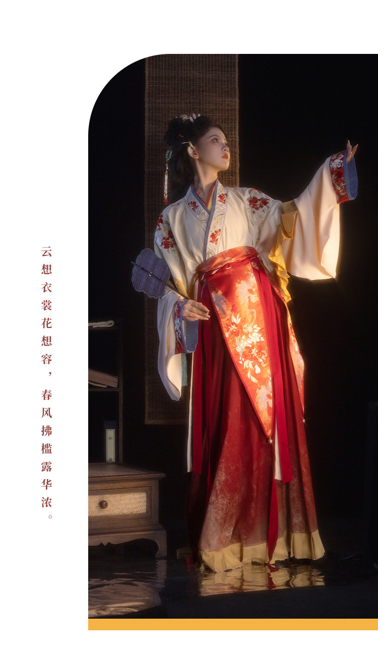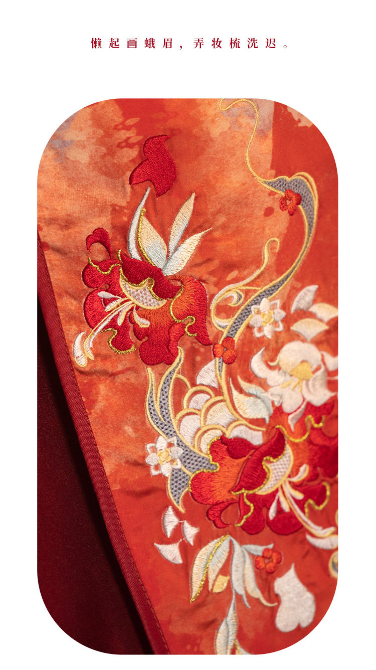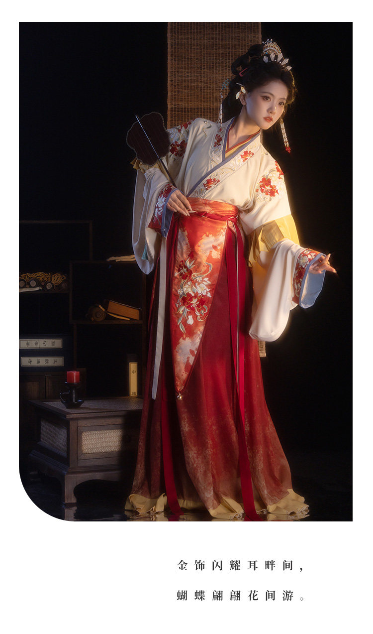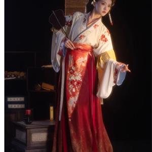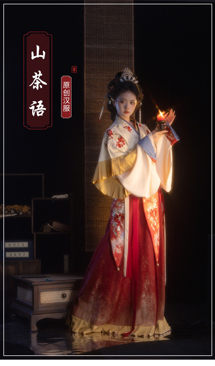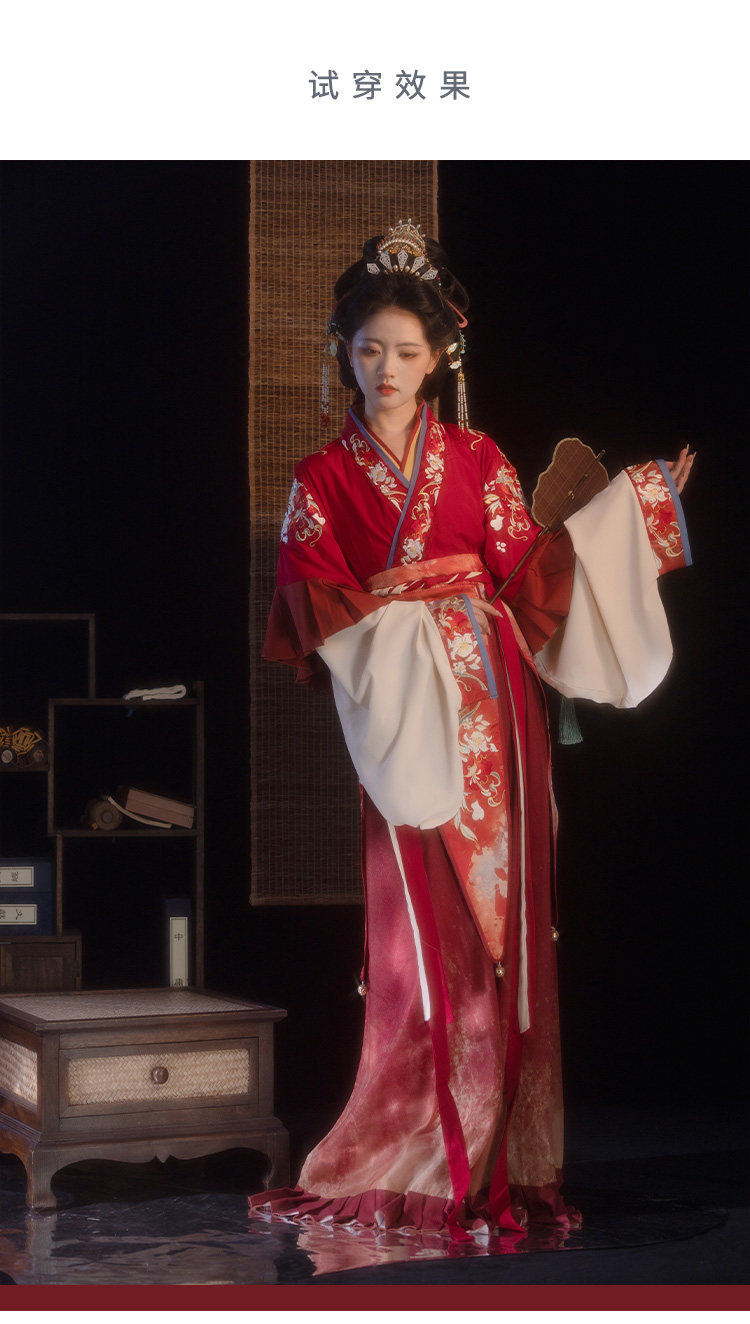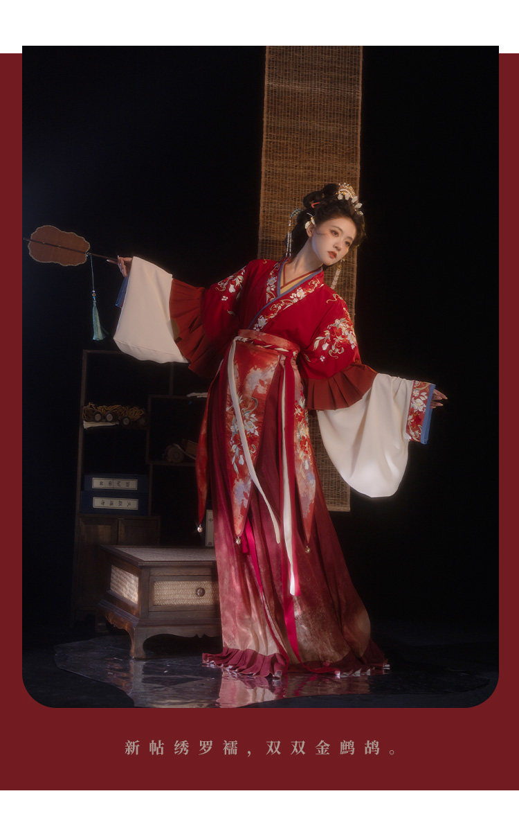 檀香阁【山茶语】晋制汉服女原创中国风刺绣南北朝全套红色八破裙」