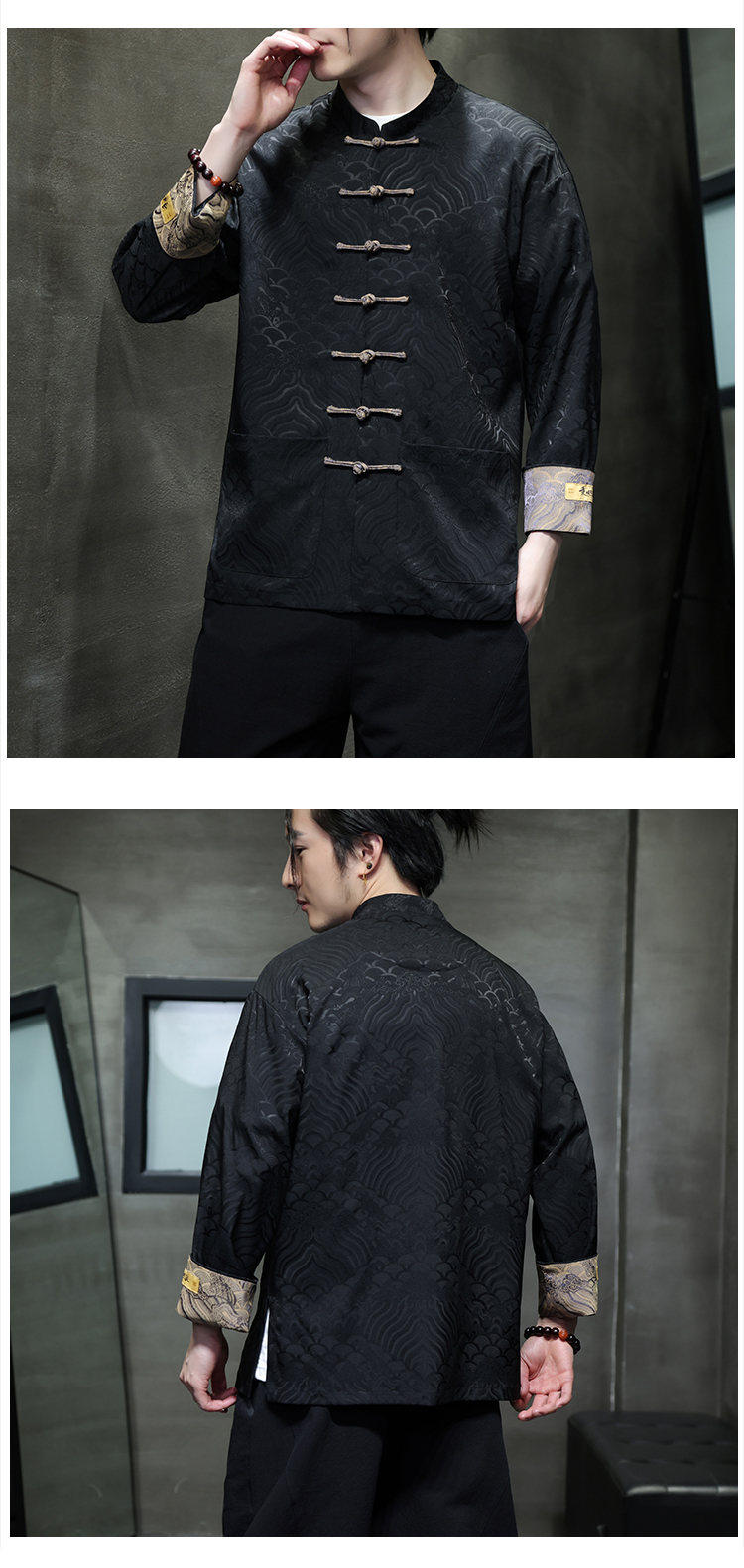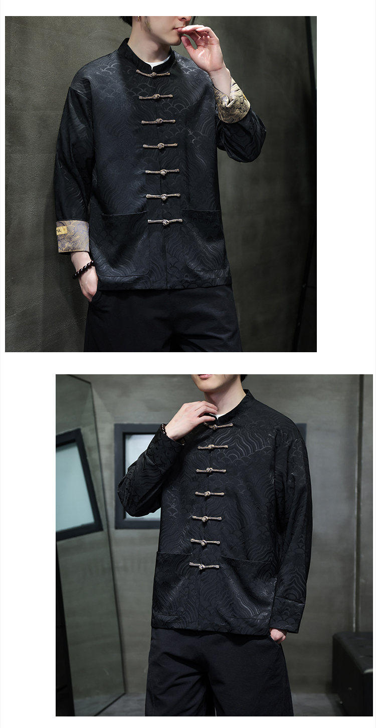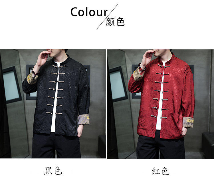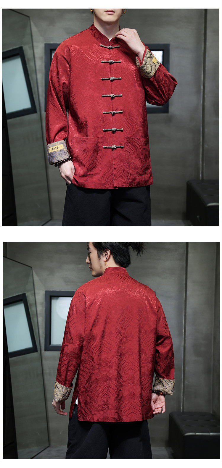 红色衬衫男长袖提花中山装外套春季中国风男装衬衣新中式唐装汉服