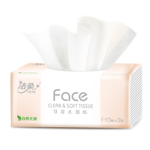 洁柔可湿水面纸家庭装3层110抽 6提/箱