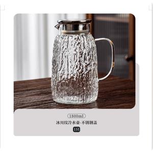 冷水壶家用客厅储水加厚凉水壶玻璃耐高温凉水杯大容量套装泡茶壶 1.8L树纹冷水壶-不锈钢盖