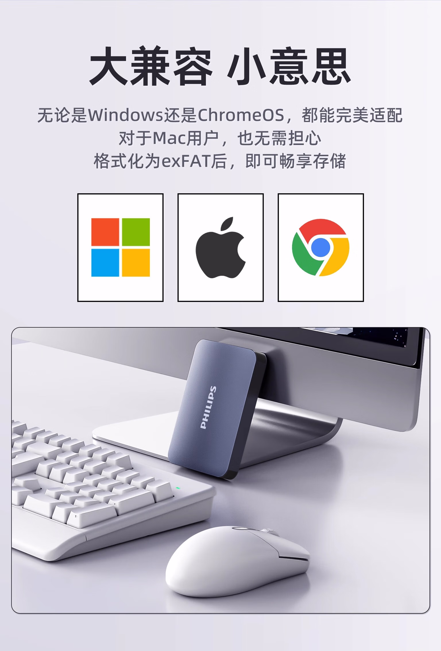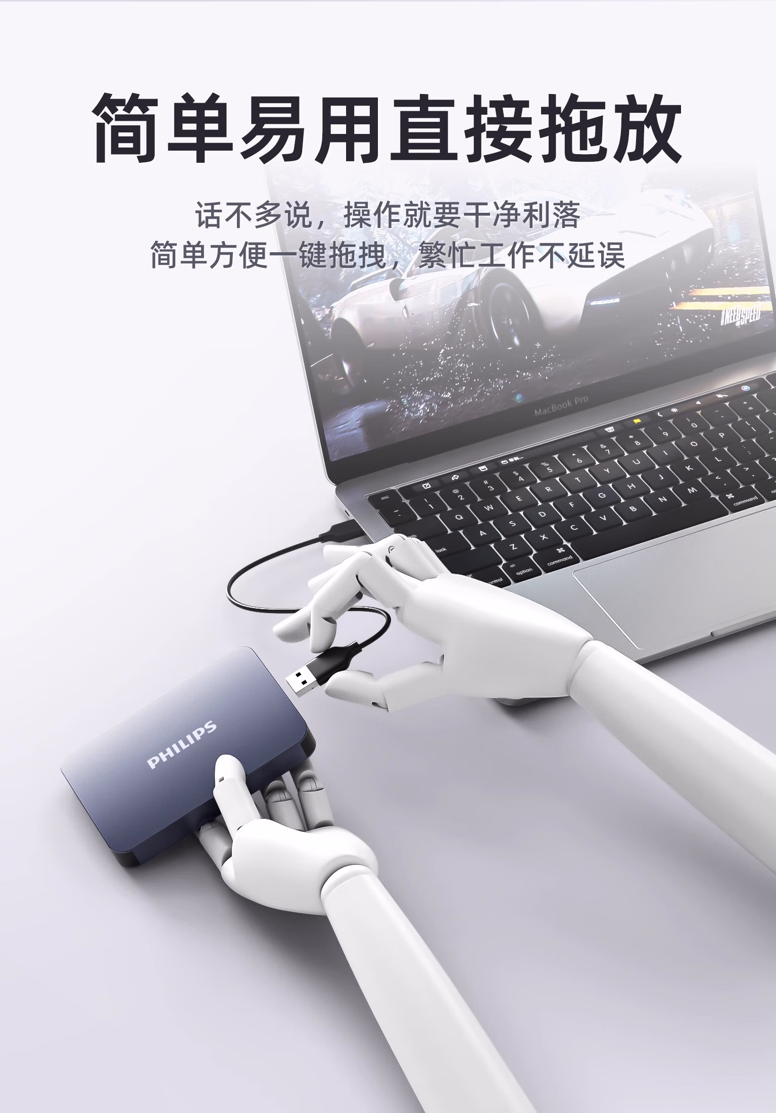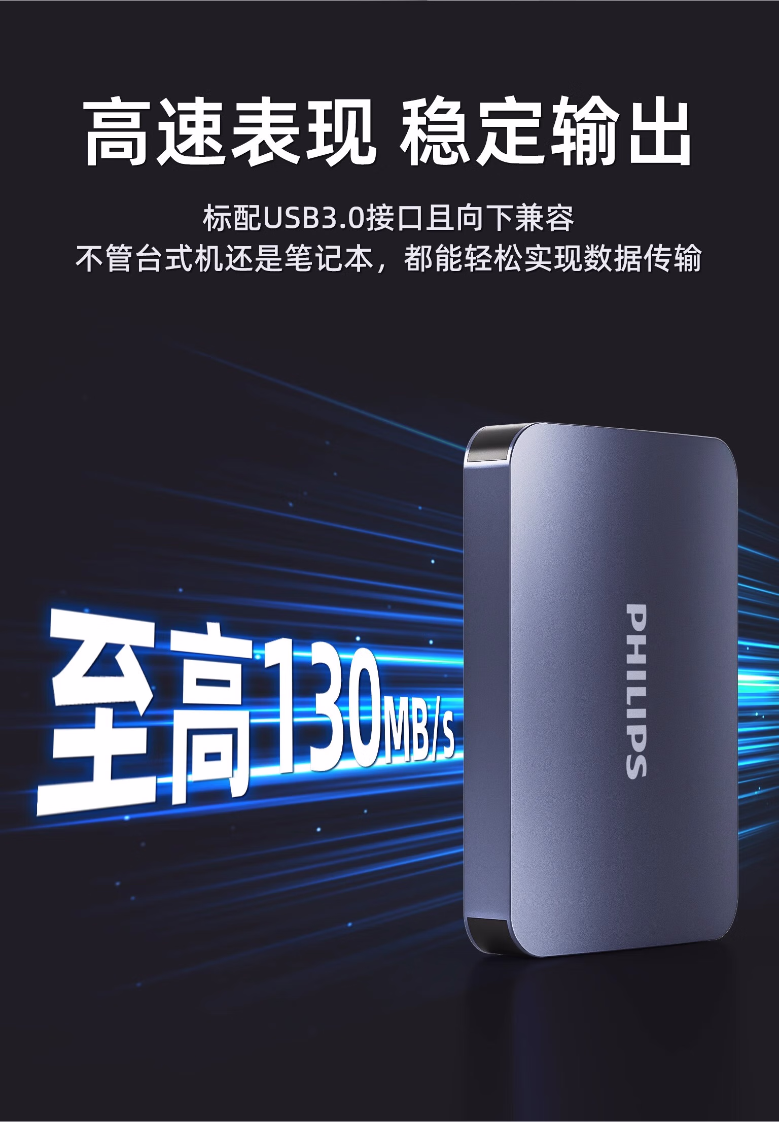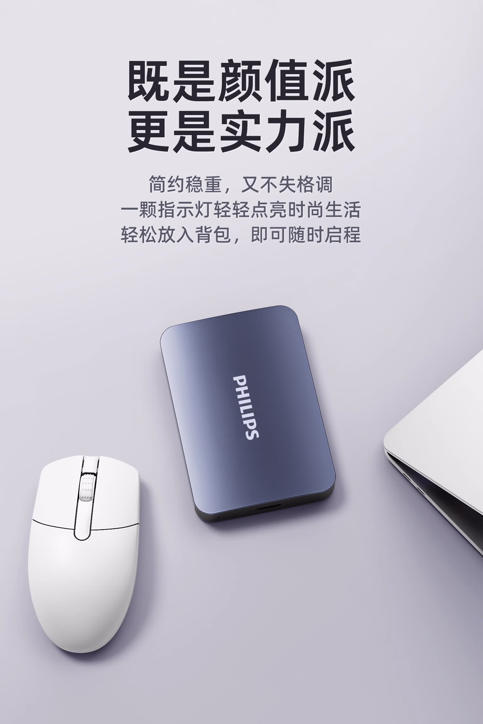 飞利浦(PHILIPS)2TB 移动硬盘 USB3.2Gen1 高速大容量21PD系列 2.5英寸电脑机械硬盘 兼容Mac 外置存储办公家庭