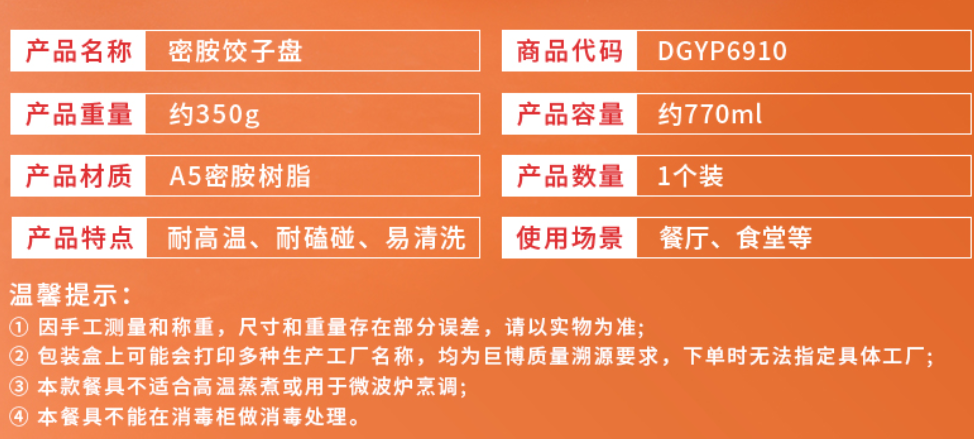 巨博 特厚密胺圆盘带格10英寸26cm DGYP6910