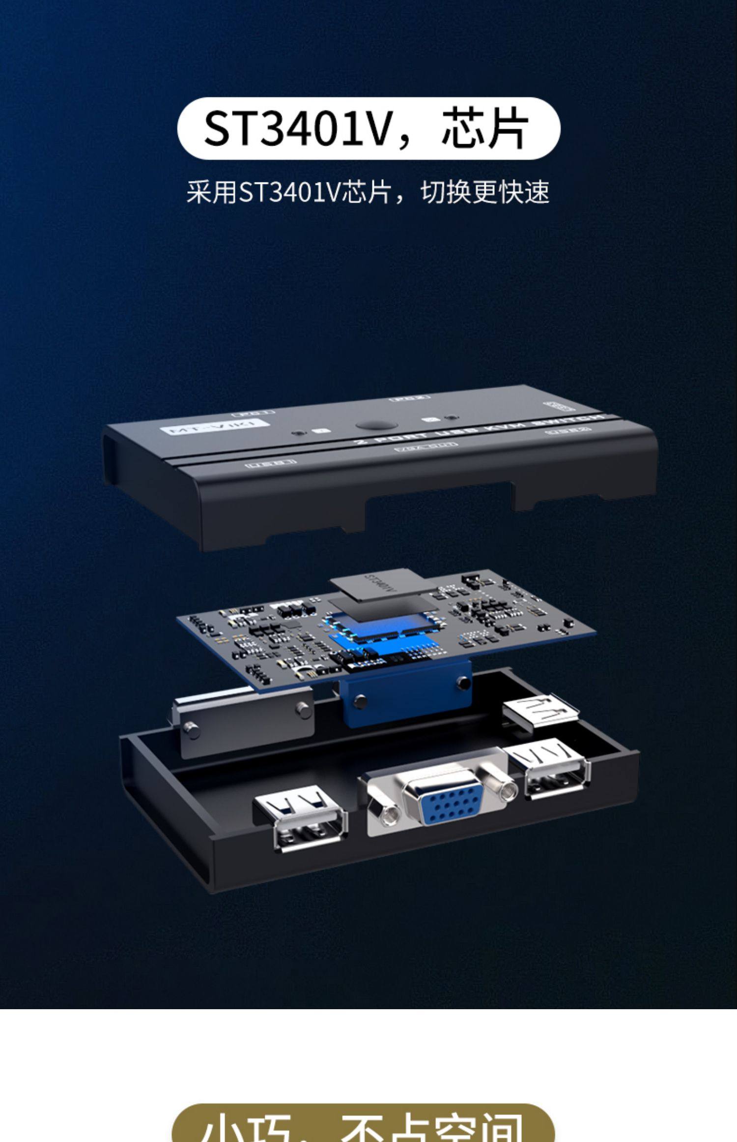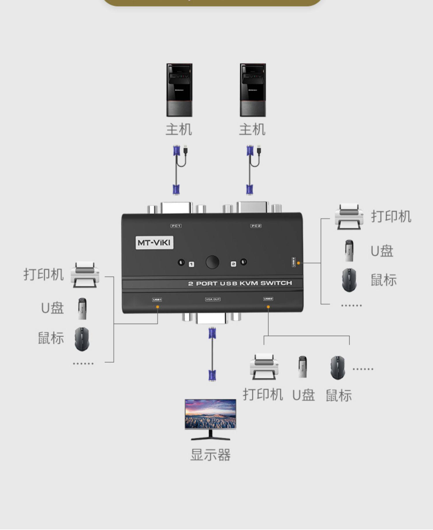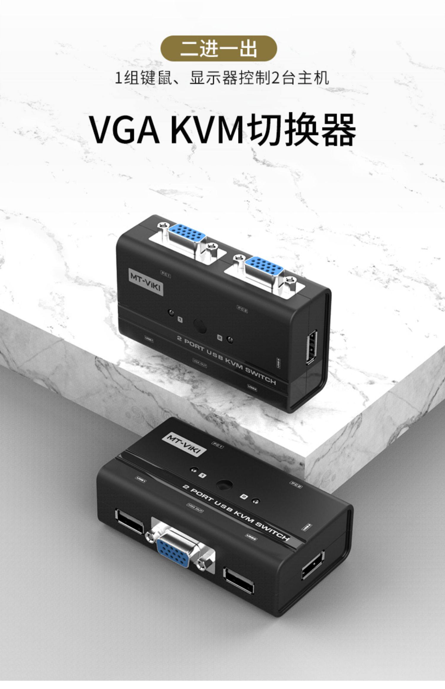 迈拓维矩KVM切换器2口USB键鼠打印机共享器VGA转换器2进1出切屏器带原装KVM线1080电脑监控共用一台显示器