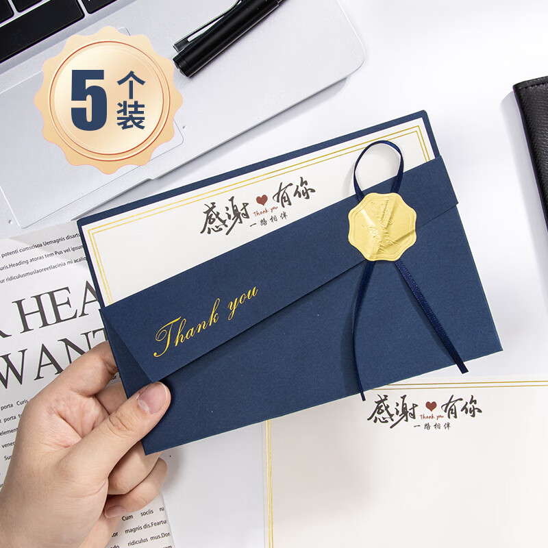 天色高级感贺卡感谢有你 教师情人节祝福礼物生日明信片手写情书卡片年会礼品伴手礼TS-6142 蓝色5个装