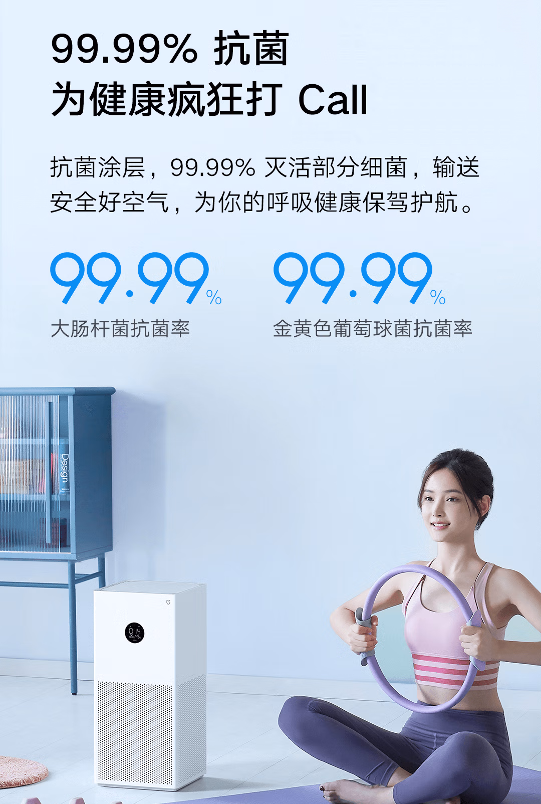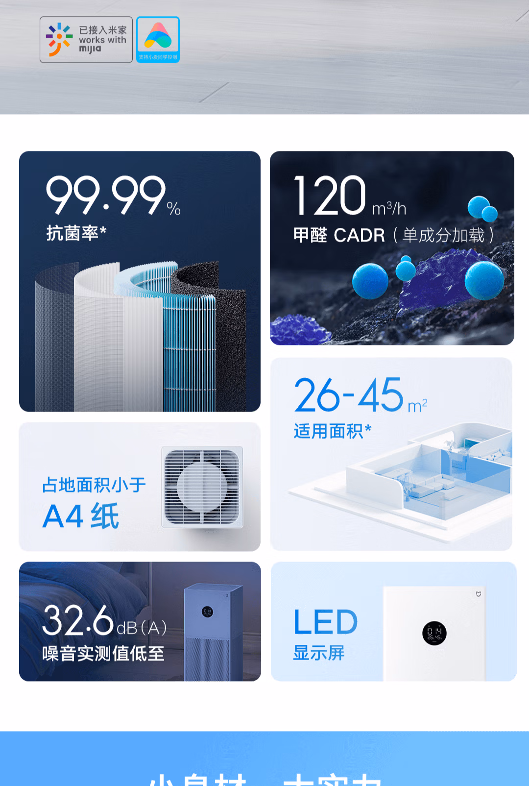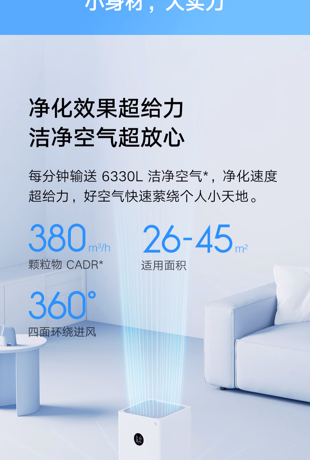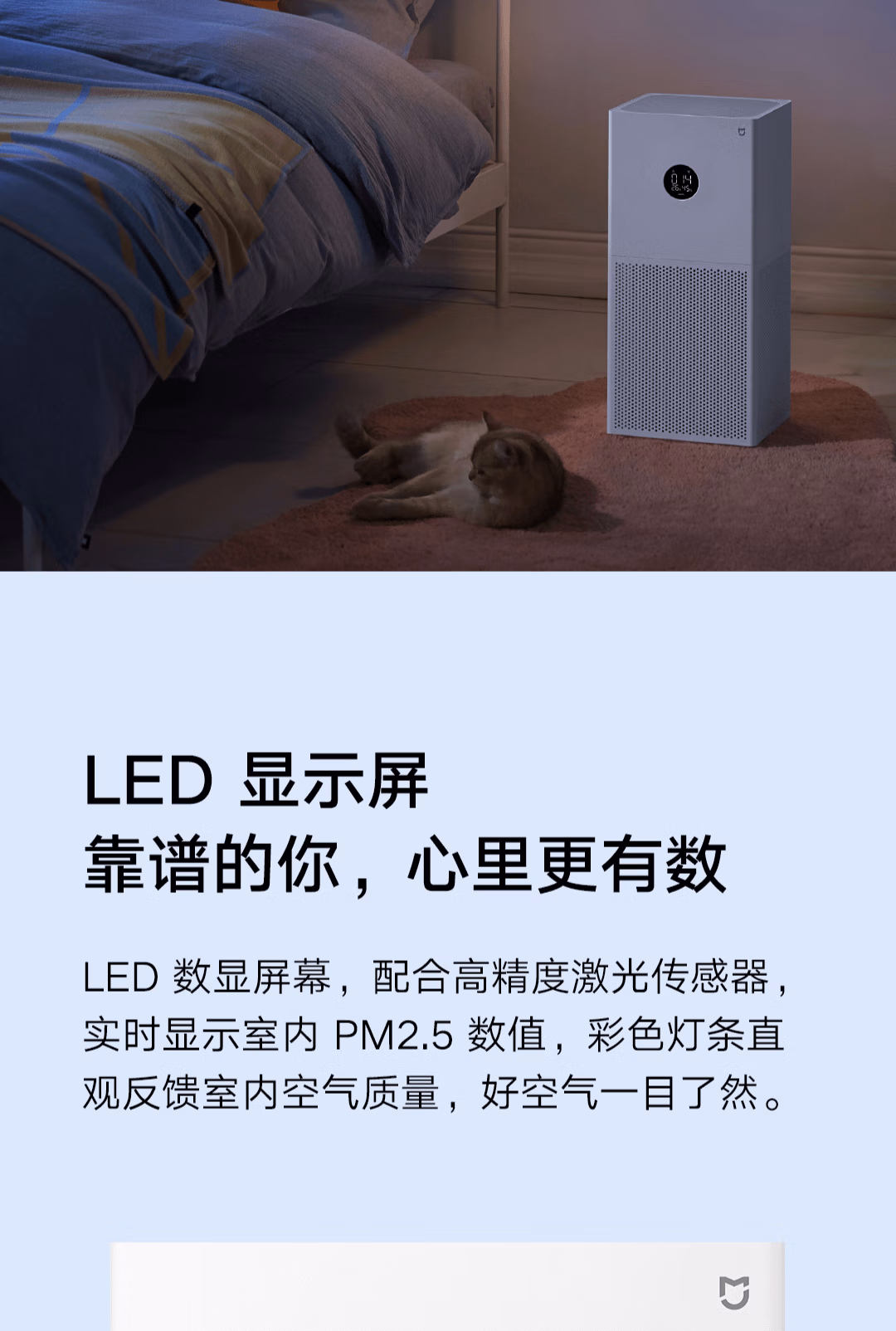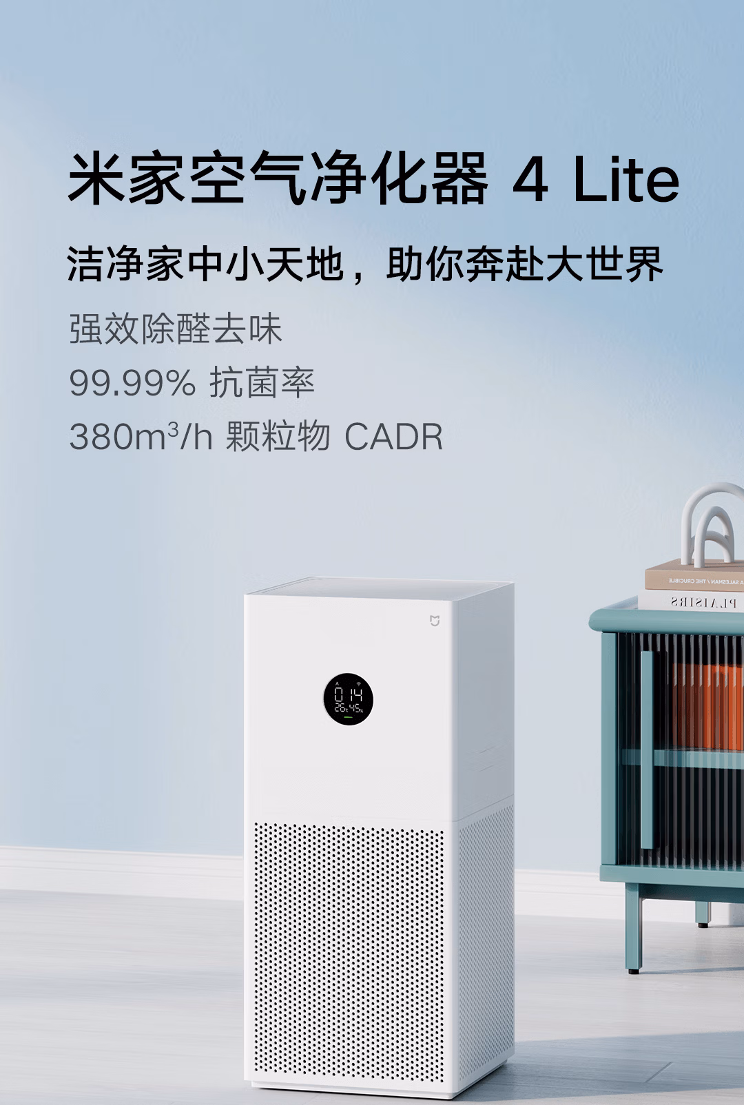 米家小米空气净化器4lite 家用除甲醛除异味PM2.5轻音设计LED显示屏智能控制小巧不占地 米家空气净化器 4 lite(单位:个)