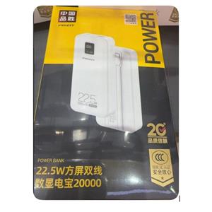 品胜【3C认证】充电宝自带双线22.5W快充20000毫安大容量移动电源可上飞机高铁适用苹果华为小米