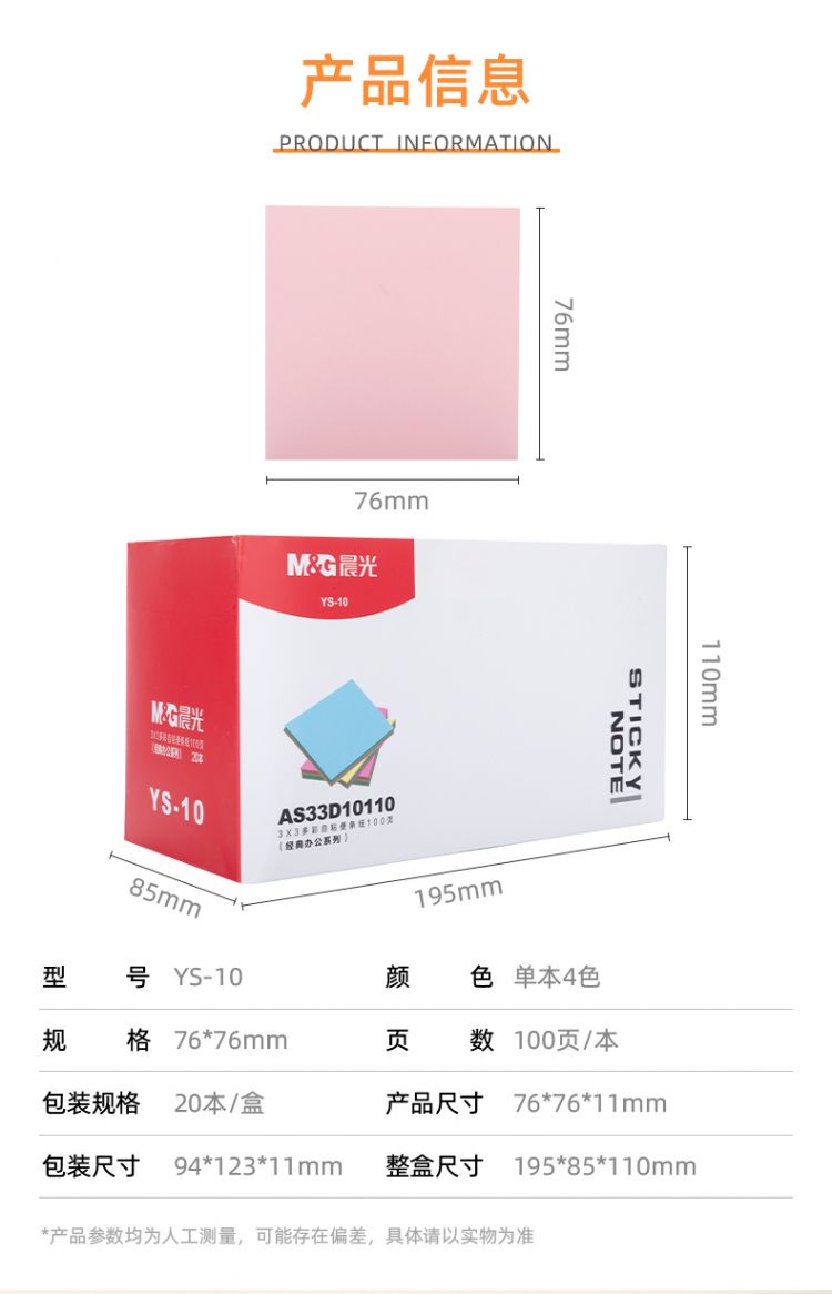 晨光YS-10便利贴记事贴 76*76mm 100页4色 (单位:本)