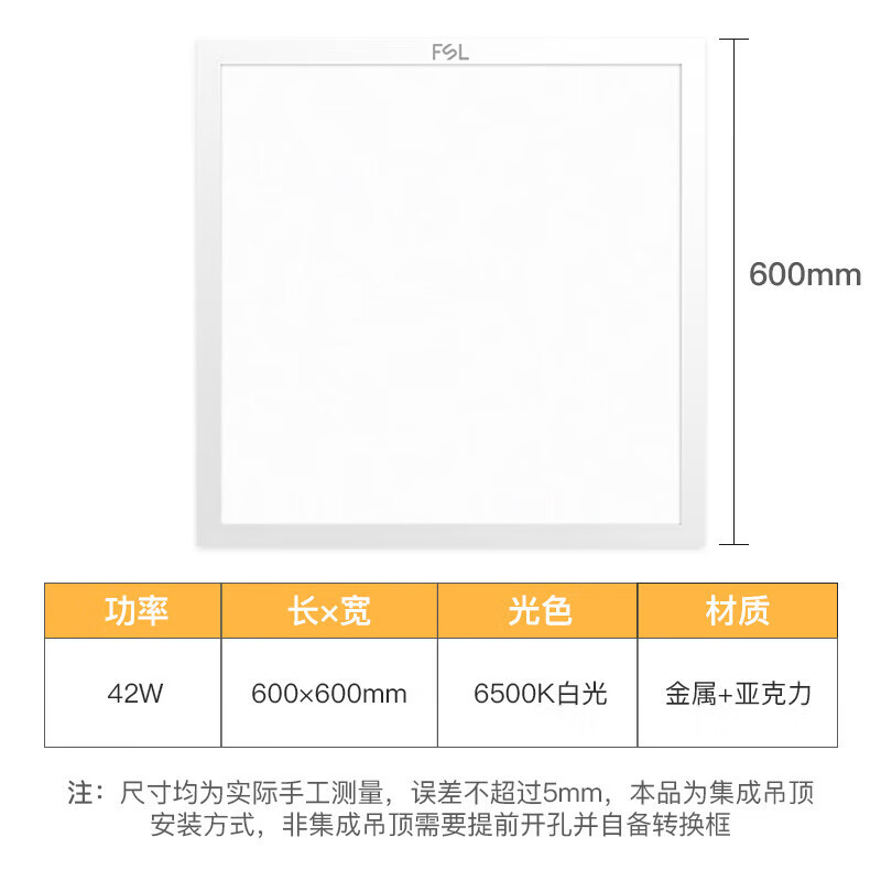 佛山照明(FSL)led集成吊顶灯面板600*600mm 铝材珍珠白 42W