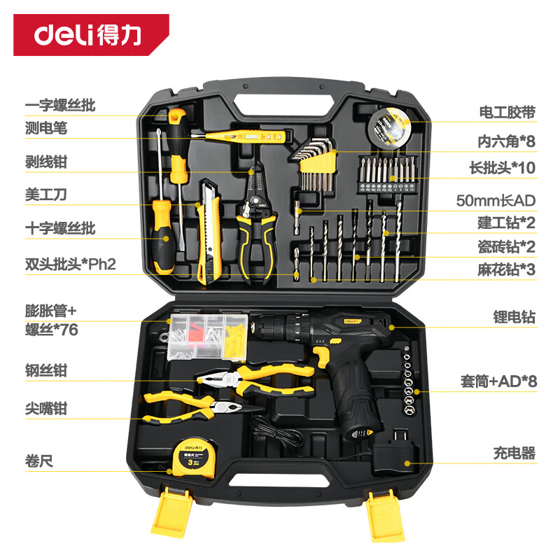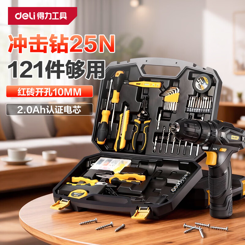 得力锂电冲击钻电动工具箱组合多功能套装(单位:套)