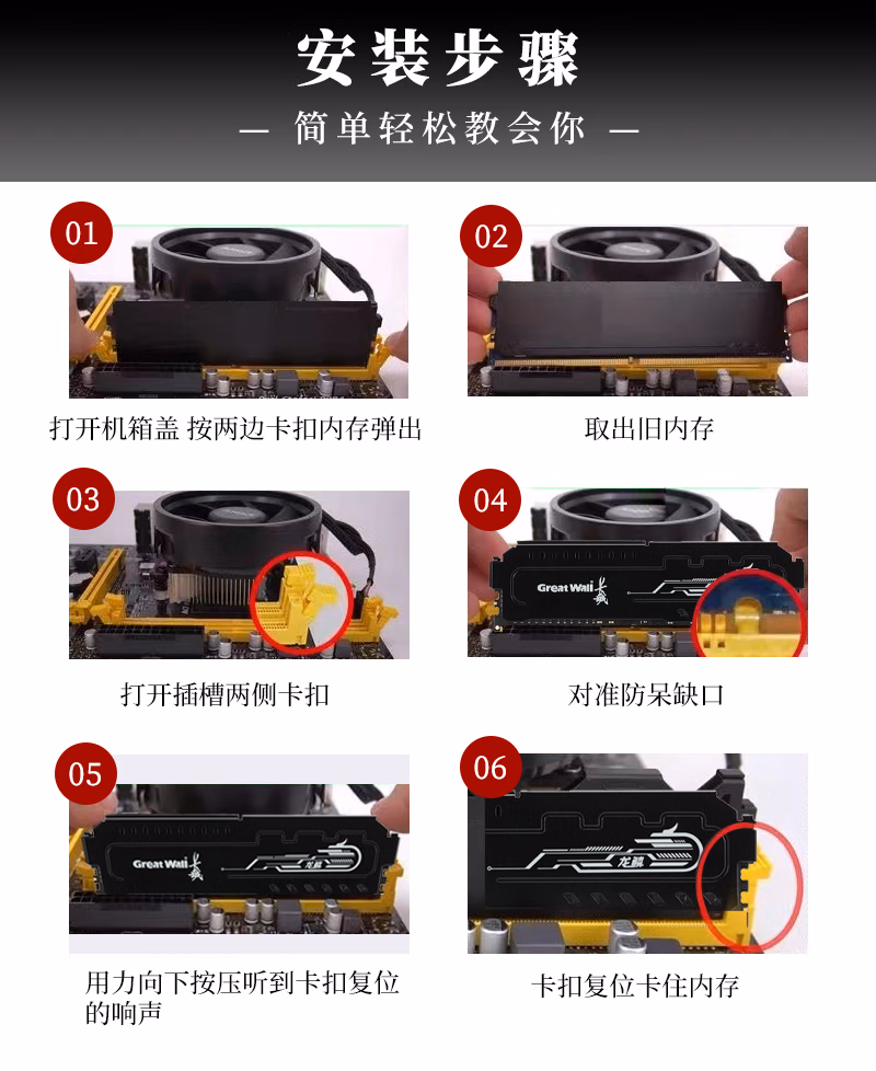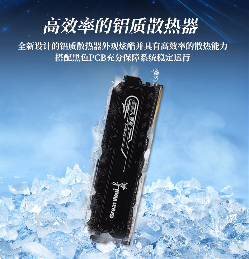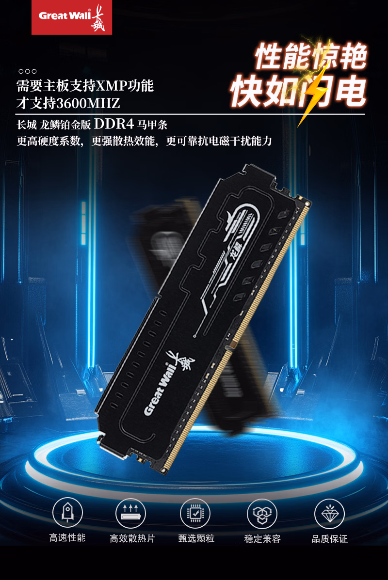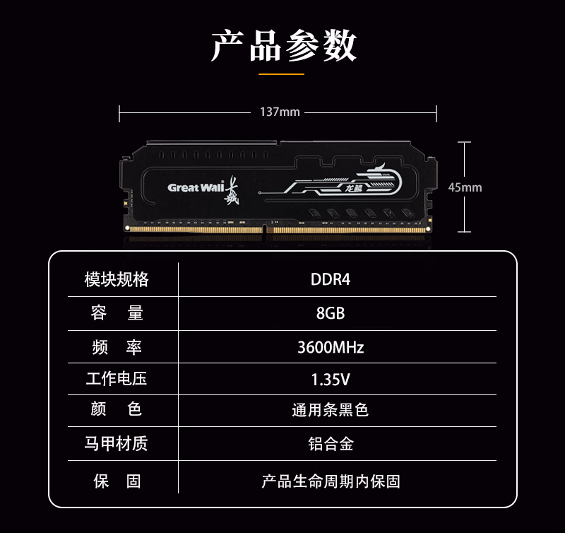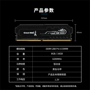 长城8GB DDR4 3200频率 台式机内存条马甲条 Intel专用条龙鳞黑金系列(单位:个)