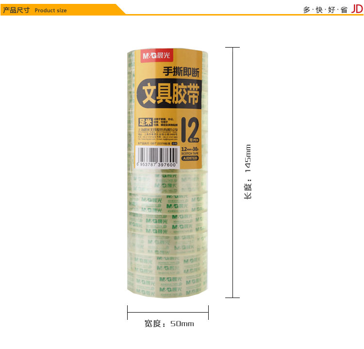 晨光 M&G 透明胶带 AJD97369 8mm*20y 12卷/筒
