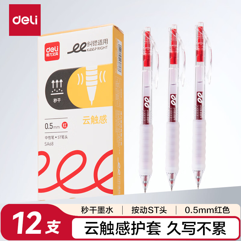 得力SA68秒干墨水0.5mm中性笔 红色12支/盒
