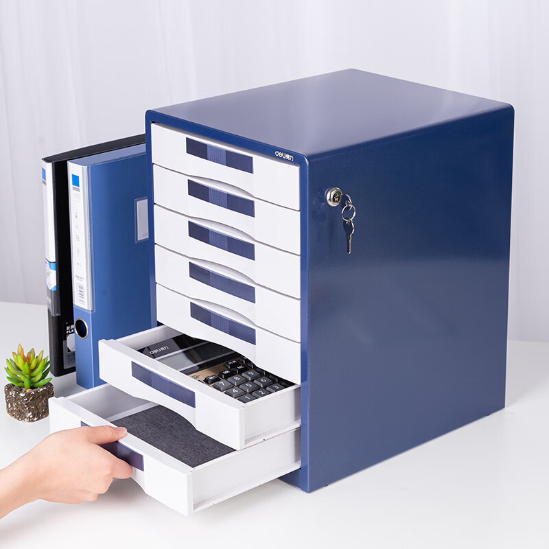 得力9702桌面文件柜 五层带锁桌面文件柜 闪银棕色(单位:个)