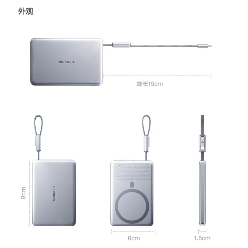 图拉斯磁吸充电宝 便携自带线适用苹果iPhone超薄小巧款式3C认证可上飞机快充大容量移动电源magsafe 深空灰(单位:个)