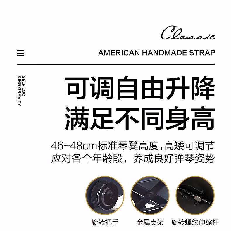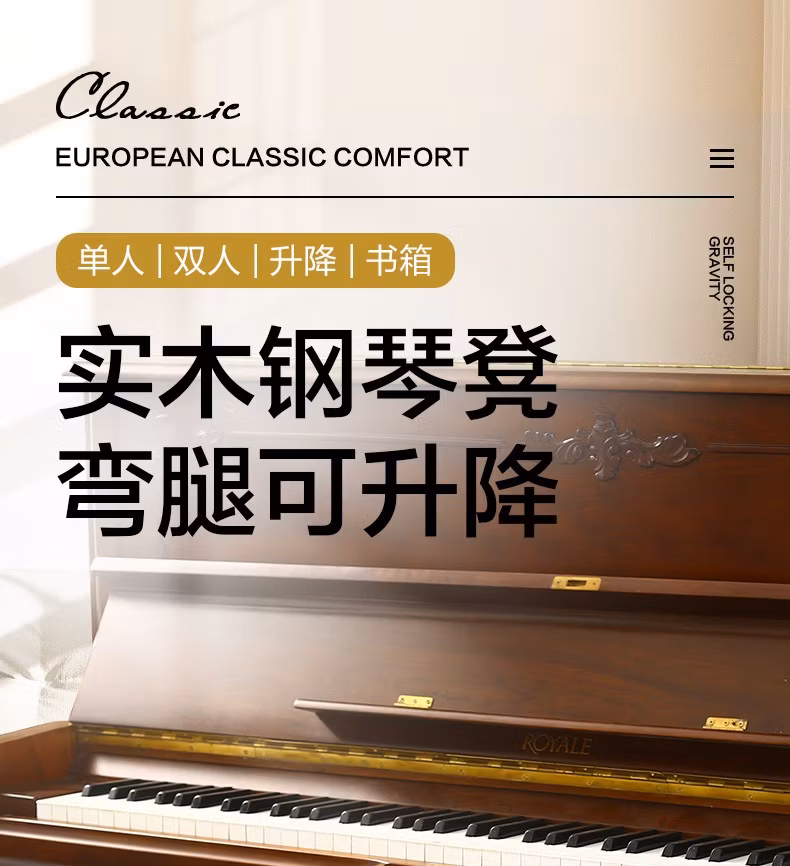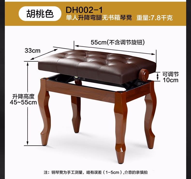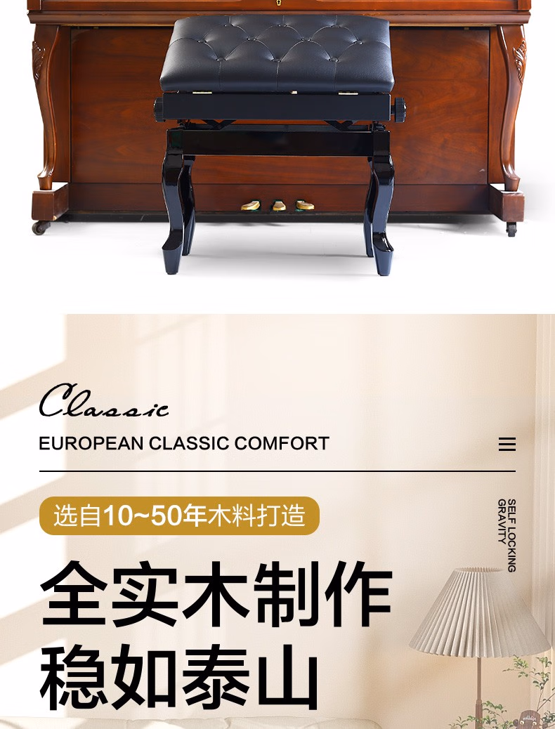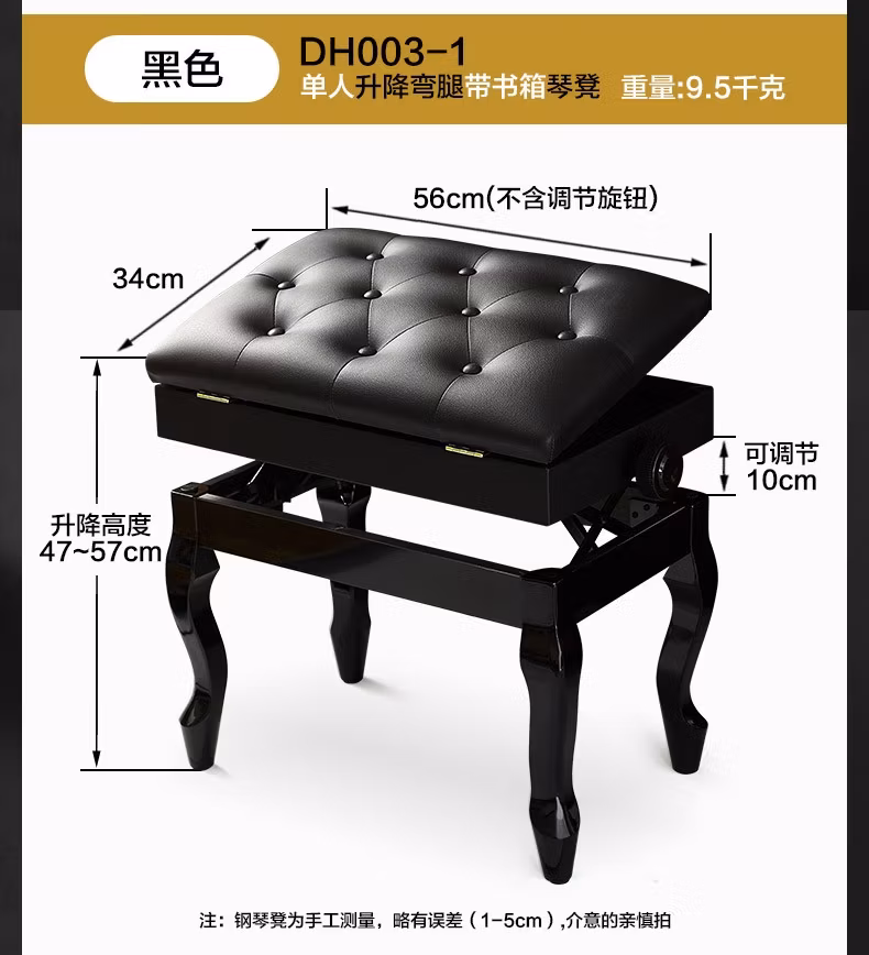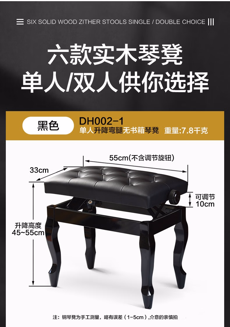 YTK钢琴凳可升降调节儿童专用实木款单人双人古筝凳子成人电钢琴椅子 黑色 单人无书箱琴凳
