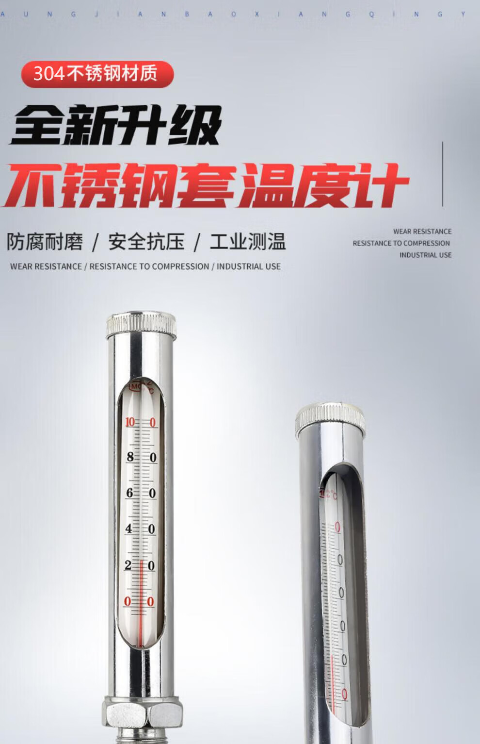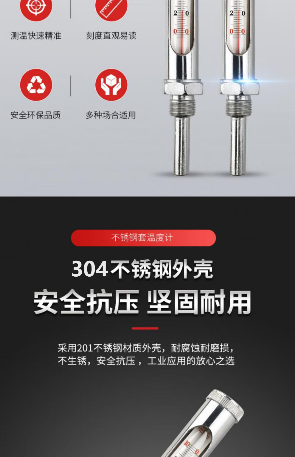 鹿悦霆WNG-11 不锈钢金属套管红水温度计304材质 0-50度 4分扣